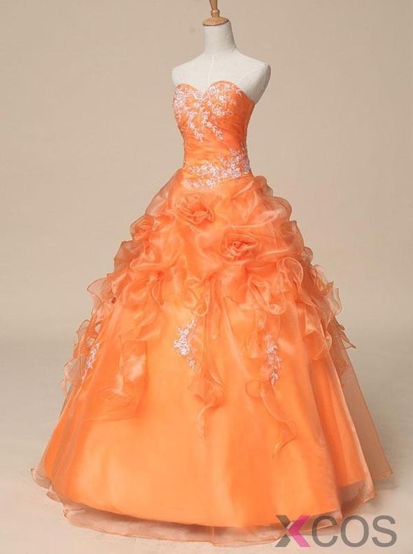2015 Elegant Ball Floor-length Sweetheart Lace-up Tulle Appliques Prom Dress/Quinceanera Dress TUPD-7321