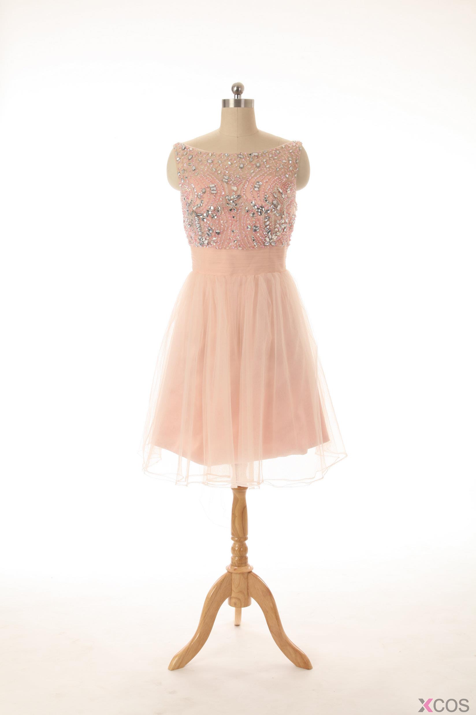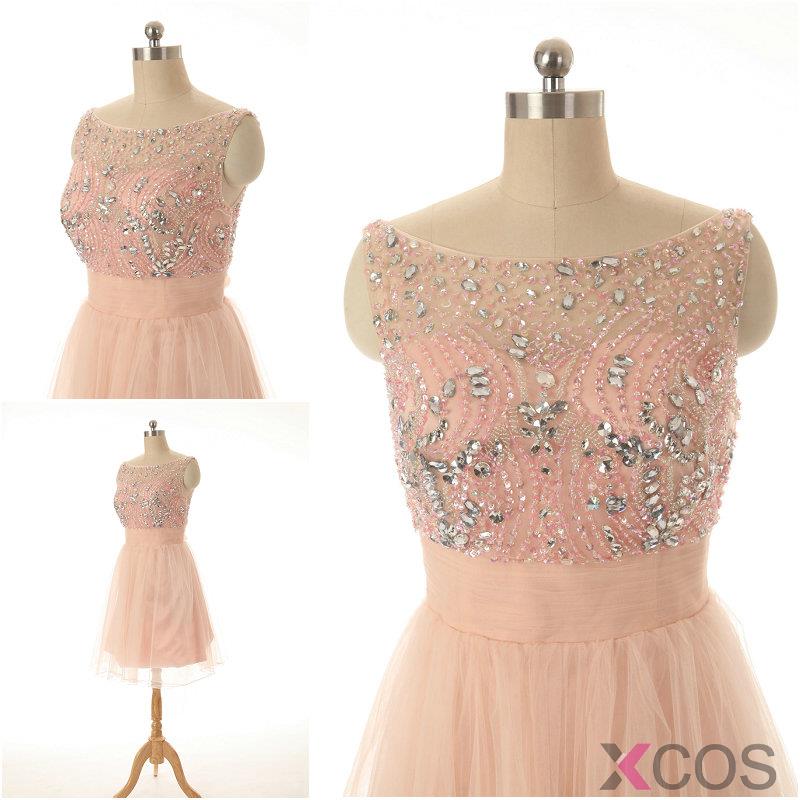 2015 Fashion A-line Scoop A-line Knee-length Tulle Beading Homecoming Dress TUHD-7363