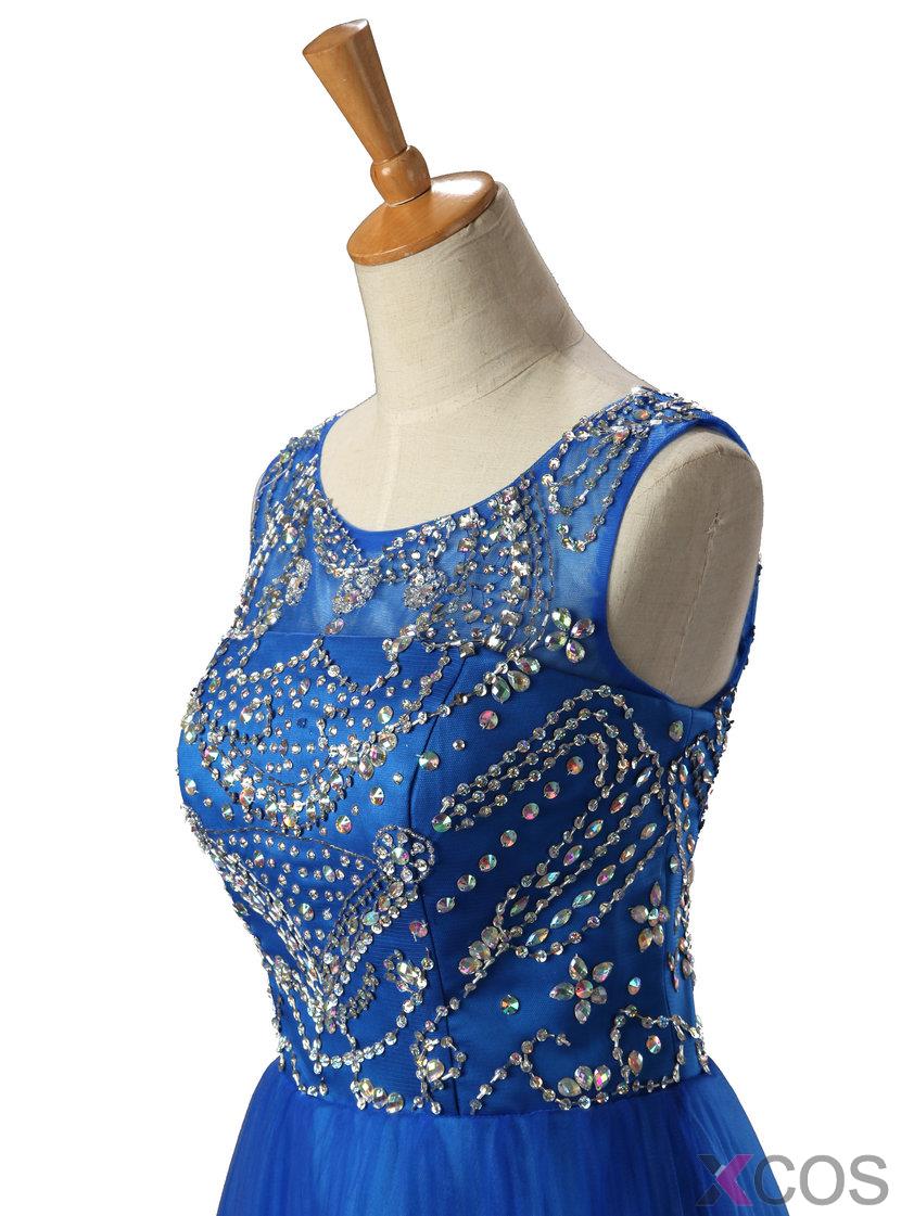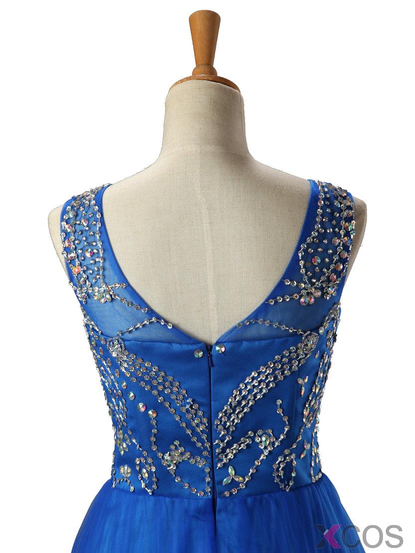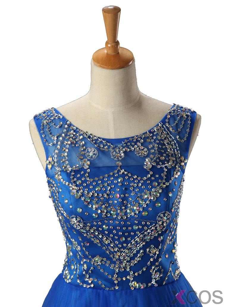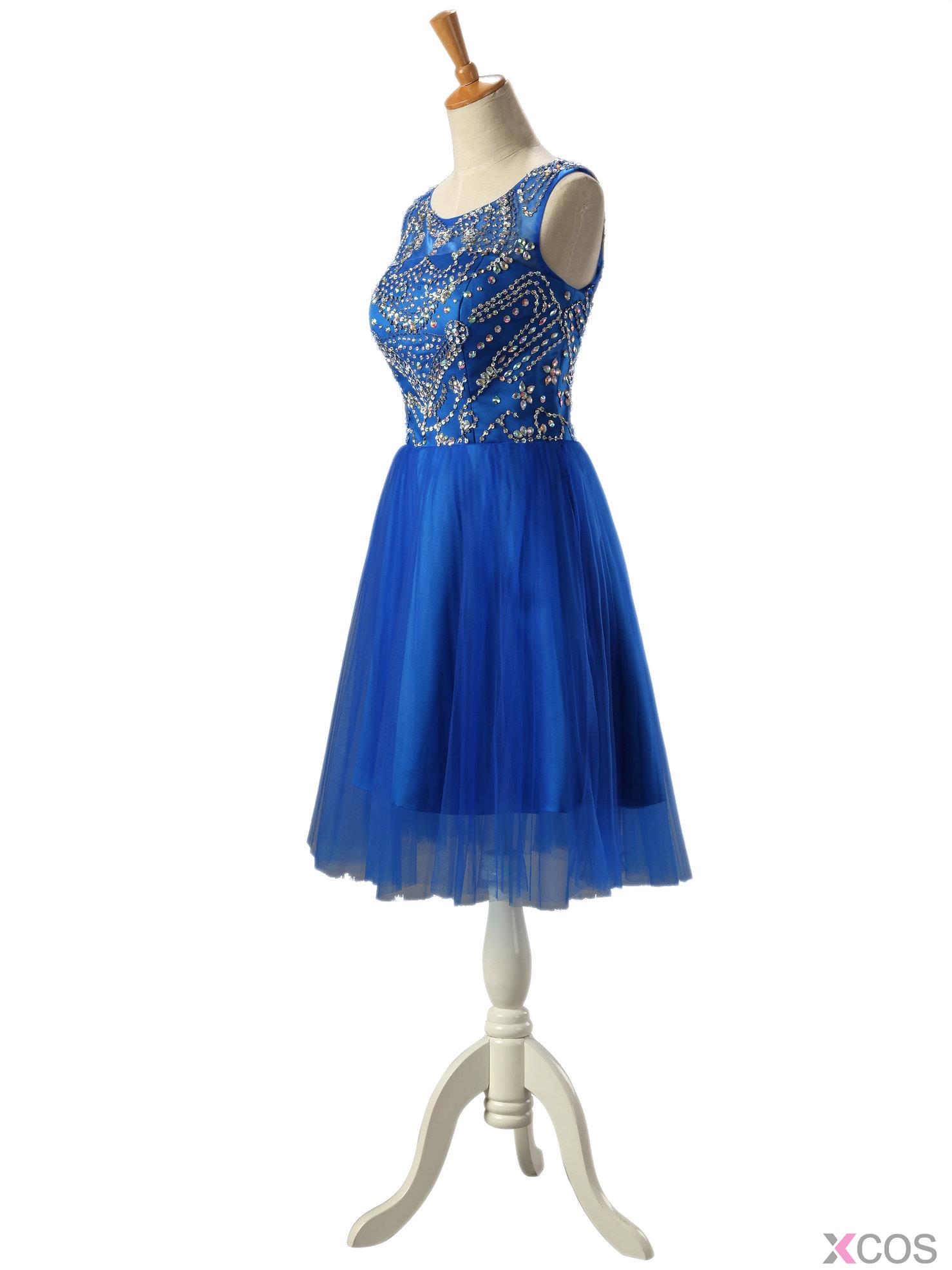 2015 Modern A-line Scoop Neck Knee-length Tulle Beading Homecoming Dress TUHD-7362