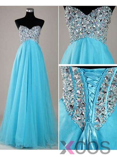 2015 Modern A-line Sweetheart Floor-length Chiffon Lace-up Beading Prom Dress CHPD-7344