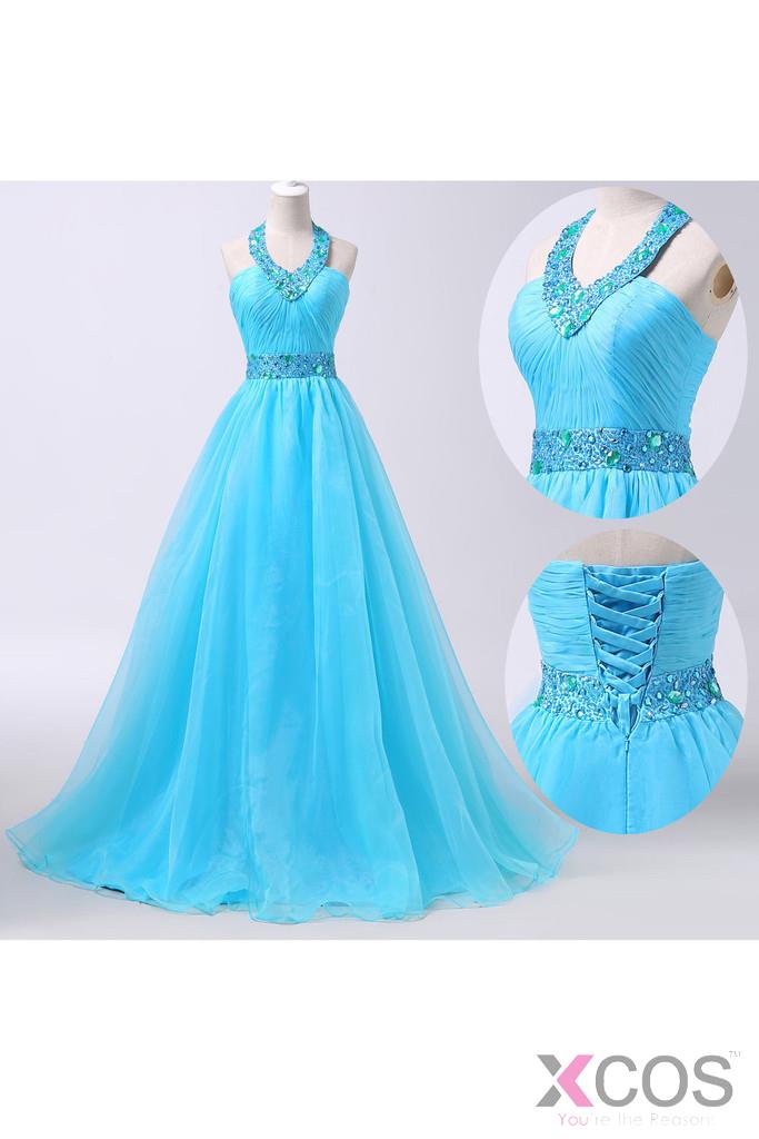 • 2016 Newest Ice Blue Long Chiffon Beaded Formal Prom Dresses OK29