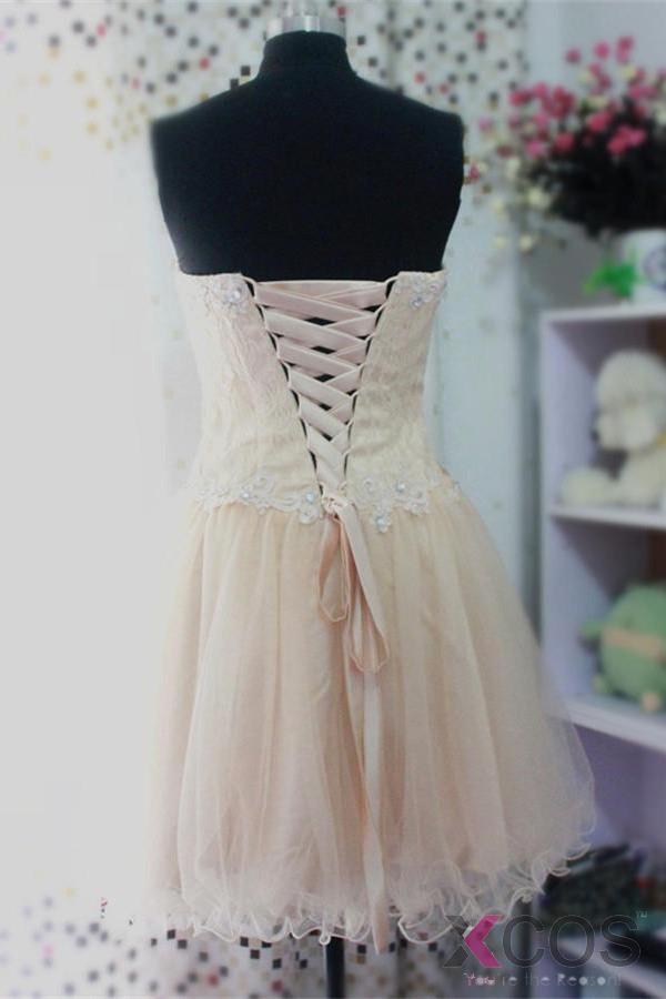 Back Up Lace Beaded Blush Pink Sweetheart Homecoming Dresses
