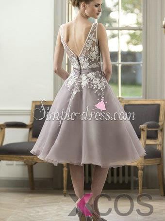 Bateau Neck A-line Knee-length Sleeveless V-back Zipper-up Appliques Chiffon Homecoming Dress CHHD-81313