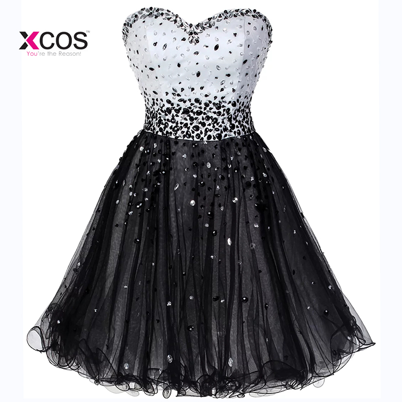 Beautiful Sweetheart Crystal Beaded Puffy Short Tulle Homecoming Dresses White Black Prom Graduation Party Formal Dress