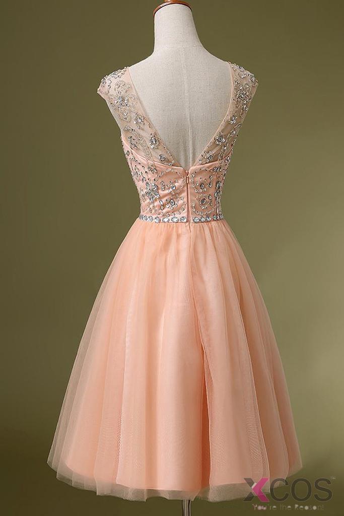 • Blush Pink Backless Tulle Short Prom\Homecoming Dresses ED0655
