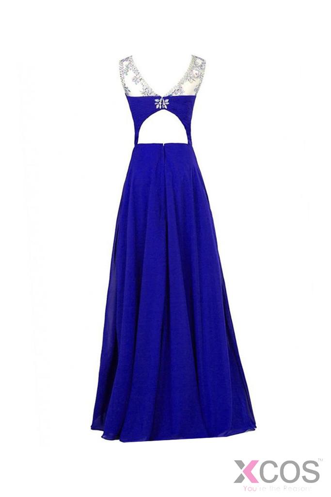 • Chiffon Royal Blue Beaded Long Prom Evening Dresses ED0652