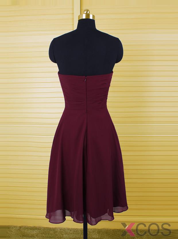 Classic A-Line Sweetheart Knee Length Burgundy Bridemaid Dress with Ruffles