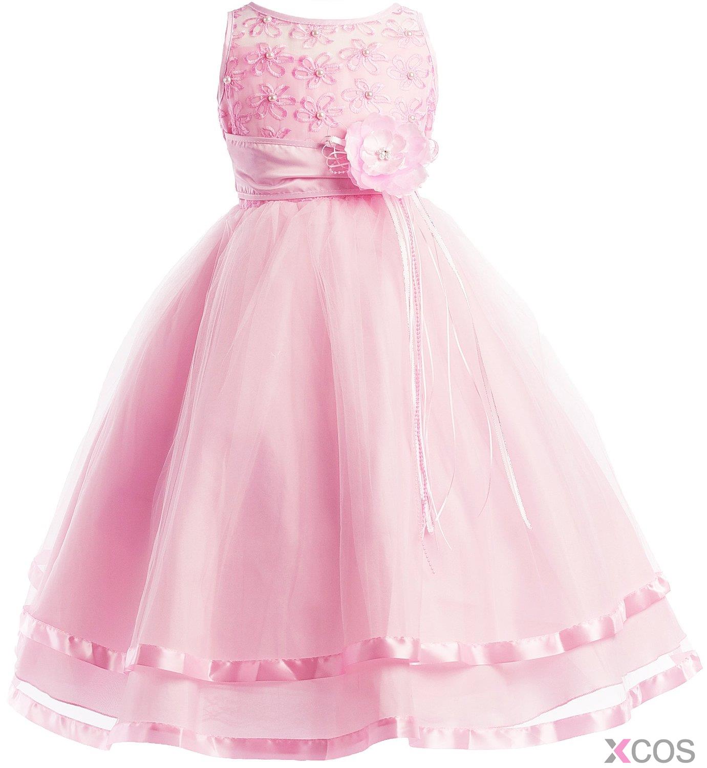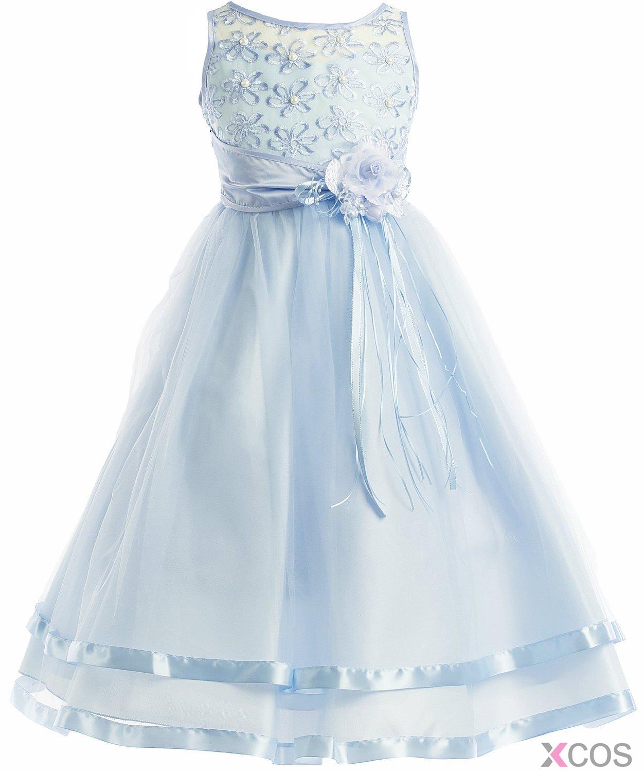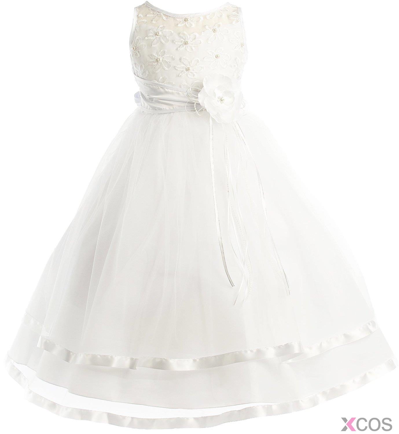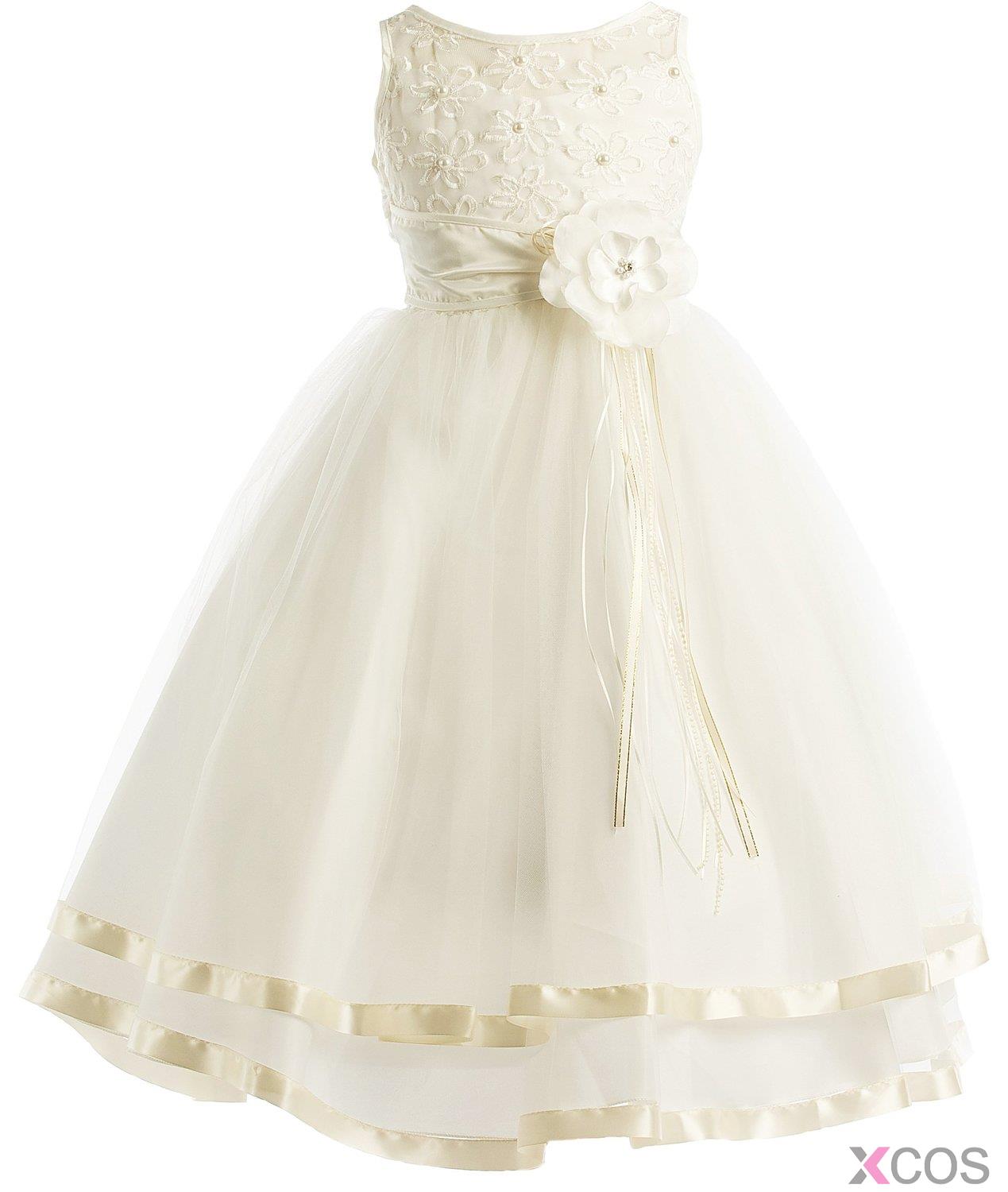 Communion Flower Girl Pageant Illusion Ribbon Tulle Dress FGD-81308