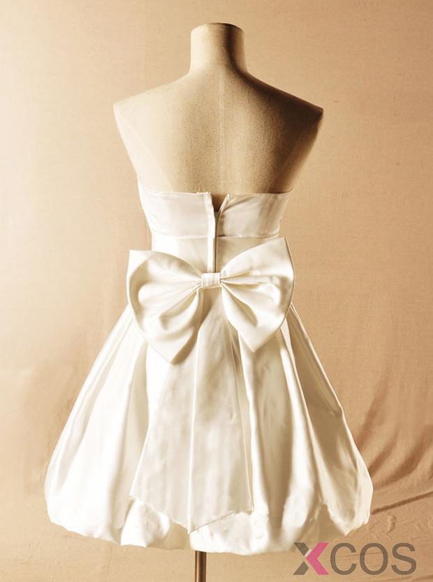 • Cute A-Line Strapless Short Ivory Bridesmaid Dress with Bowknot