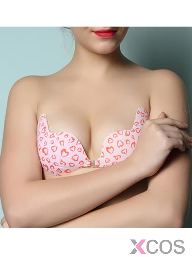 • Cute Heart Print Pink Backless Push-up Bra
