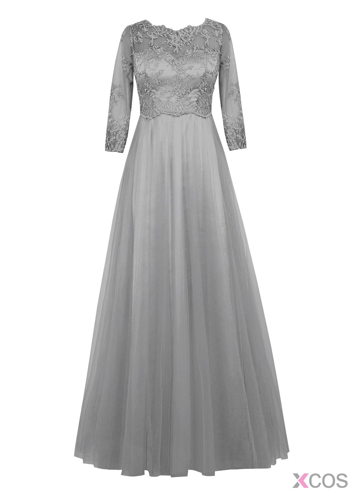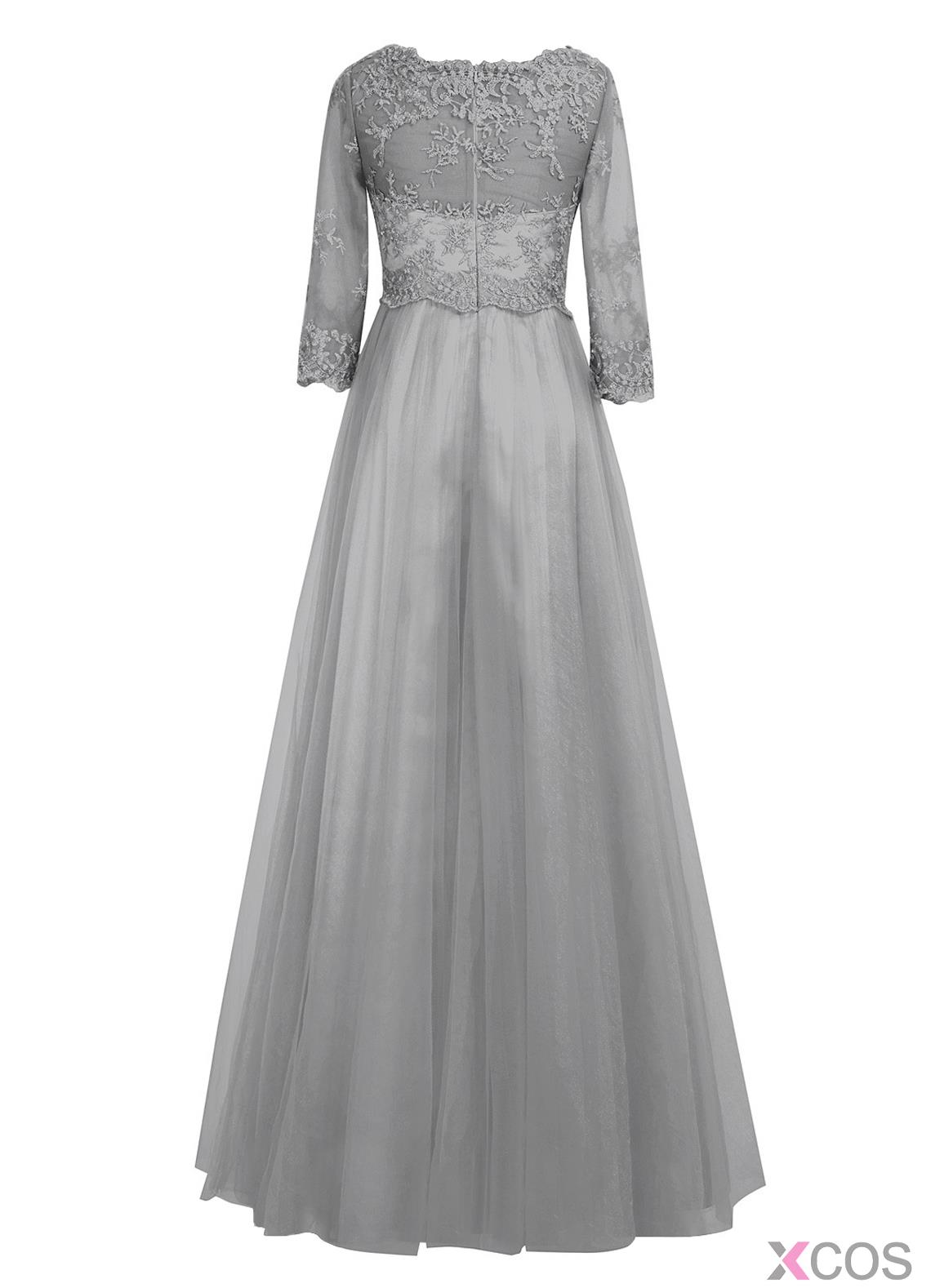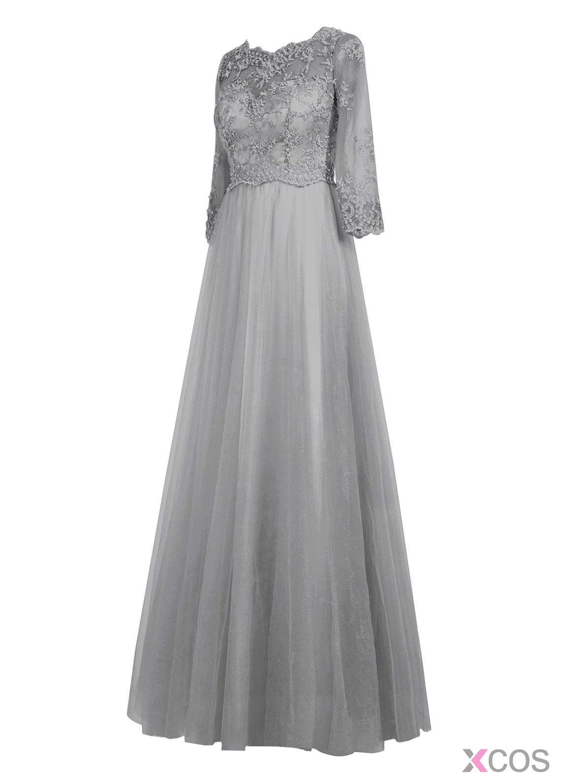 • Elegant A-line Scalloped-Edge Floor-length Chiffon Half Sleeves Gery Long Prom Dress