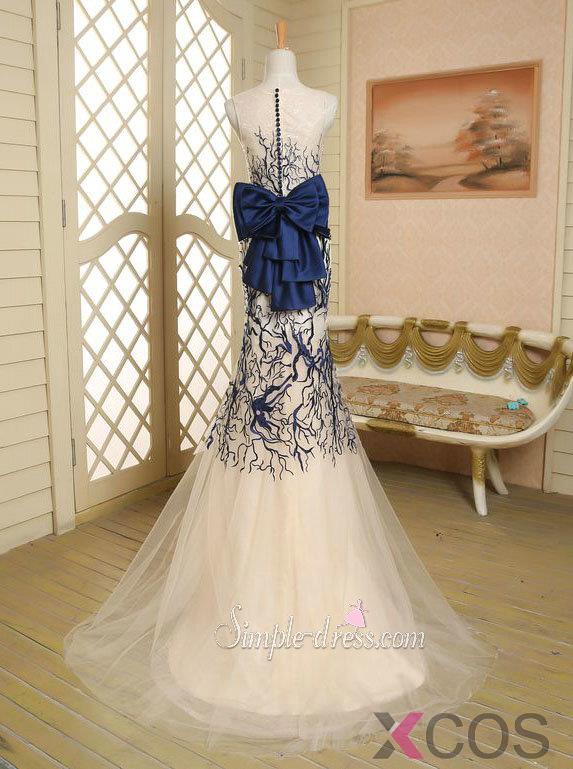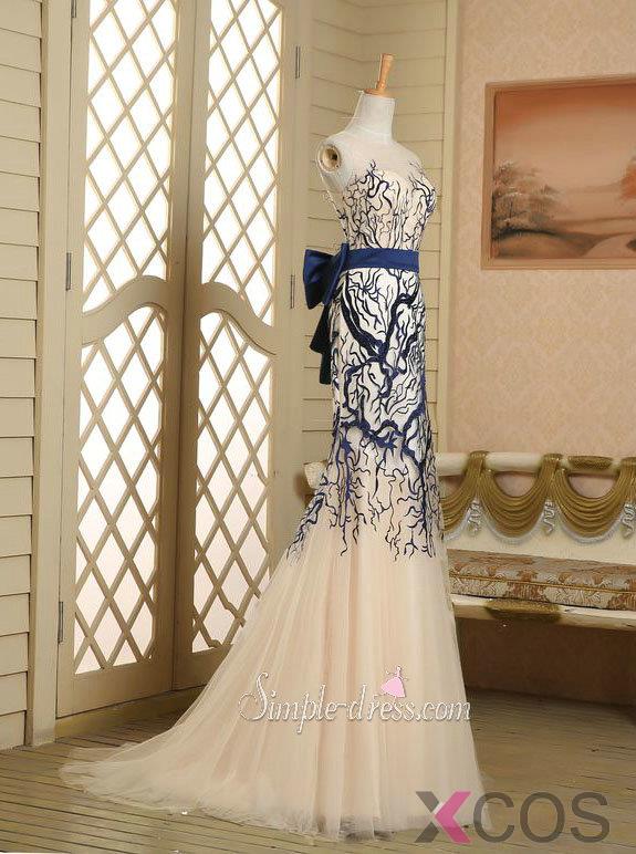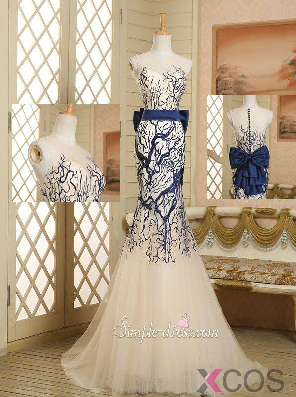 • Elegant Mermaid Prom Dress/Lace Applique Long Tulle Dresses For Prom TUPD-30988