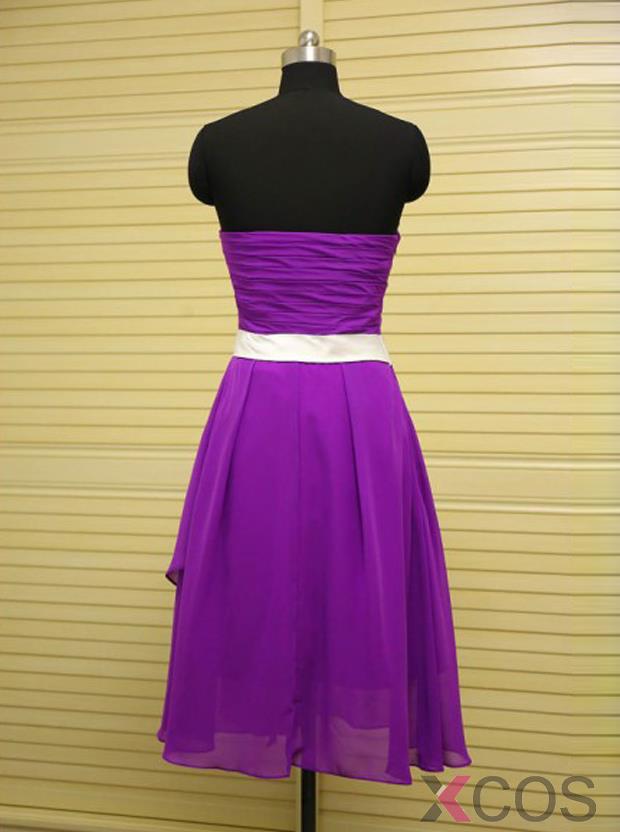 Exquisite A-Line Strapless Knee Length Purple Bridemaid Dress with Ruffles