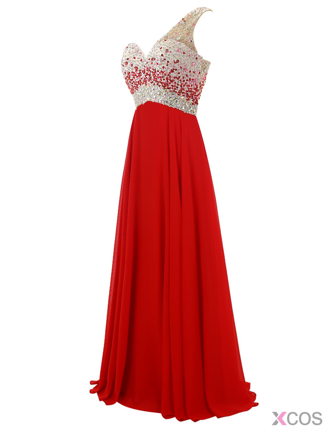 • Fashion One-shoulder Beading A-line Long Red Prom/Party Dresses