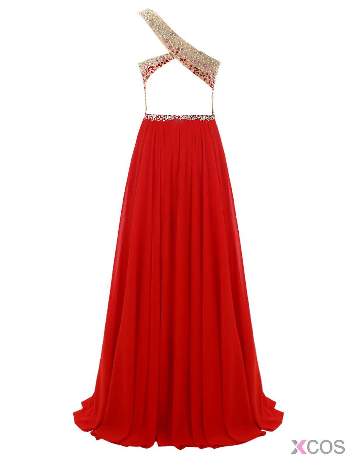 Fashion One-shoulder Beading A-line Long Red Prom/Party Dresses