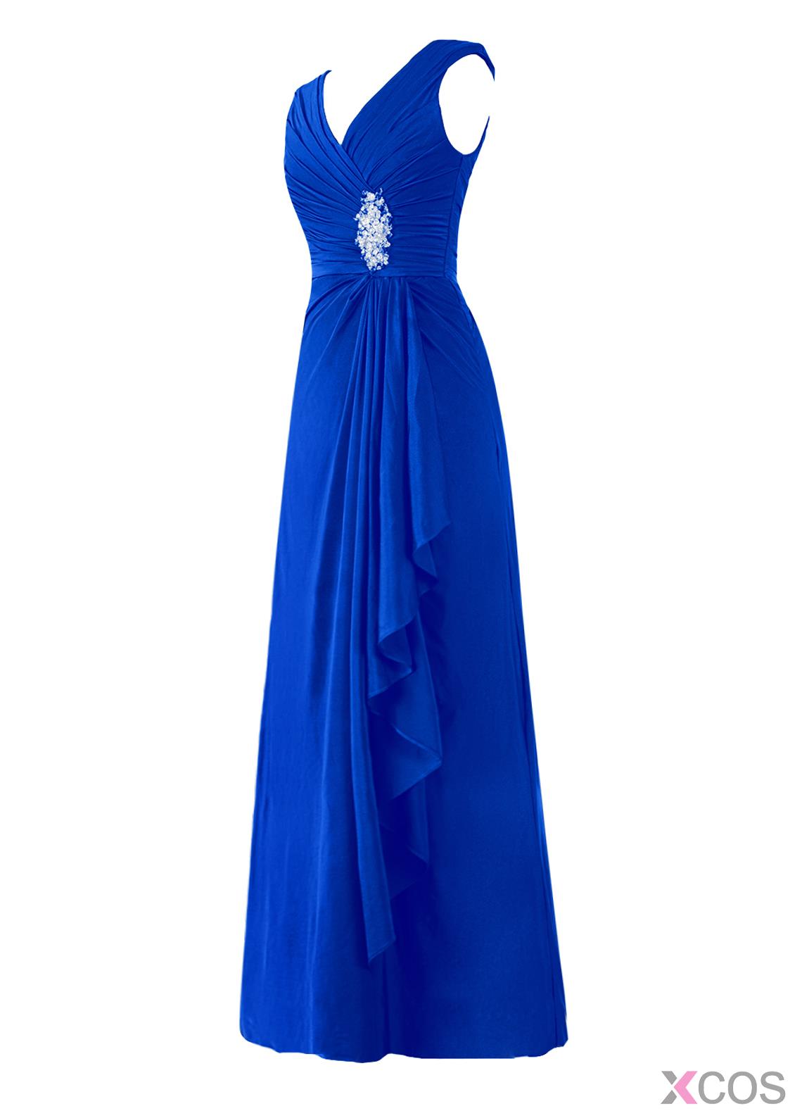 • Fashion V-neck A-line Long Royal Blue Prom/Party Dress With Rhinestone
