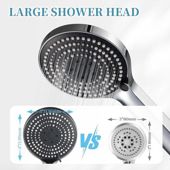 Large-Sided Shower Head: The diameter of the handheld pressure shower head is 5”/130 mm, which improves the coverage area so that you can enjoy the shower experience. It is an ideal choice for fast and thoroughly rinse shampoos.