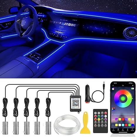 About Package: Car ambient lighting kit includes 1 x 5 in 1 car light, 236 inches fiber optic and tube, 1 x remote control, 1 x cigarette lighter wire, 1 x pry tool, 1 x manual.