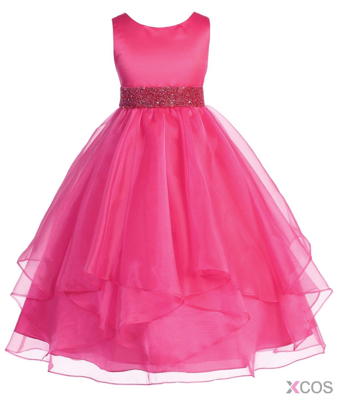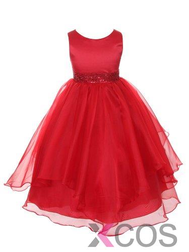 Girls Chic Baby Asymmetric Ruffles Satin Organza Flower Girl Dress FGD-81305