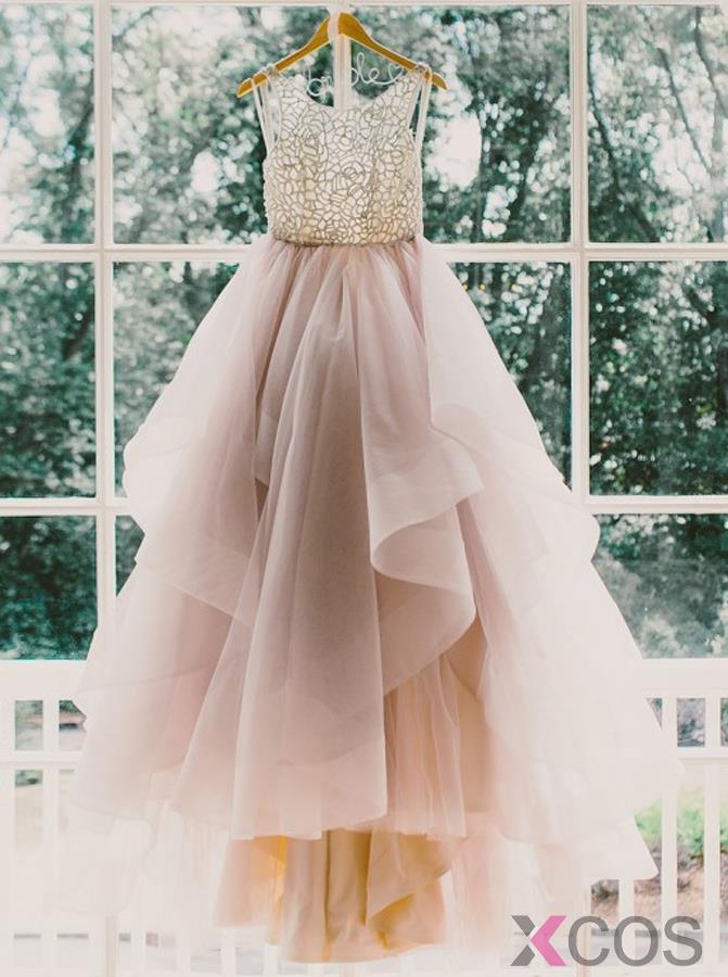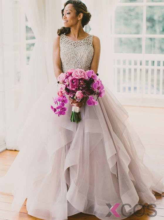 Gorgeous A-line Scoop Lavender Ruffles Bridal Gown/ Wedding Dress