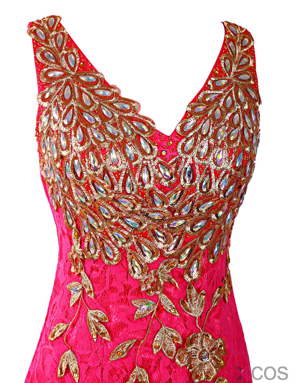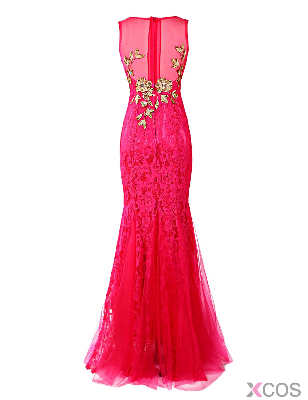 • Gorgeous Mermaid V-neck Lace Long Fuchsia Prom/Evening Dress With Embroidery