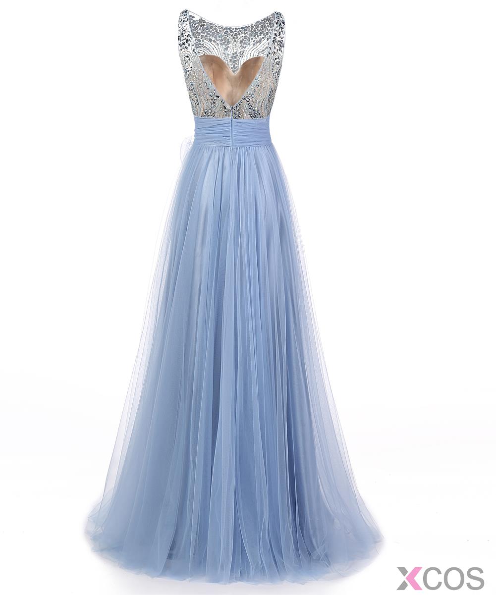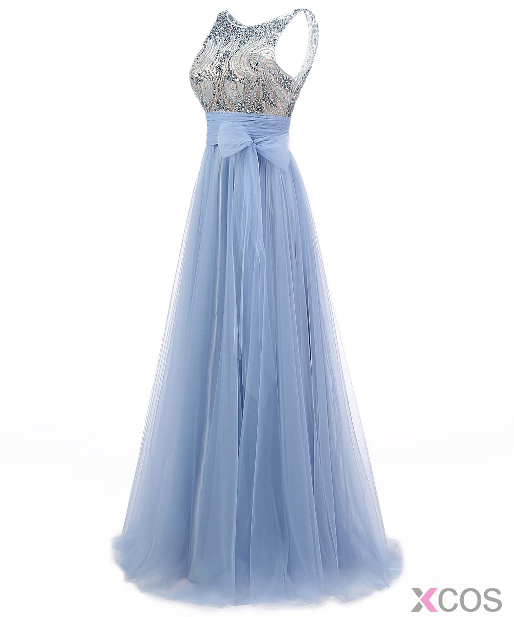 • Gorgeous Scoop A-line Beading Long Lalic Prom/Evening Dress With Bow Sash