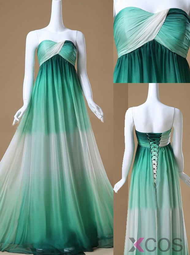 • Gradient A-Line Sweetheart Floor Length Turquoise Bridesmaid Dress with Ruffles