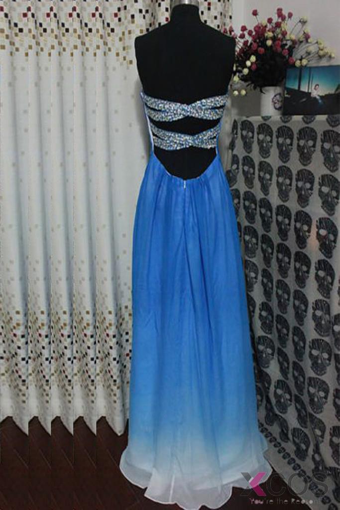 • Gradient Ombre Chiffon  Beaded Long Prom Dresses ED0647