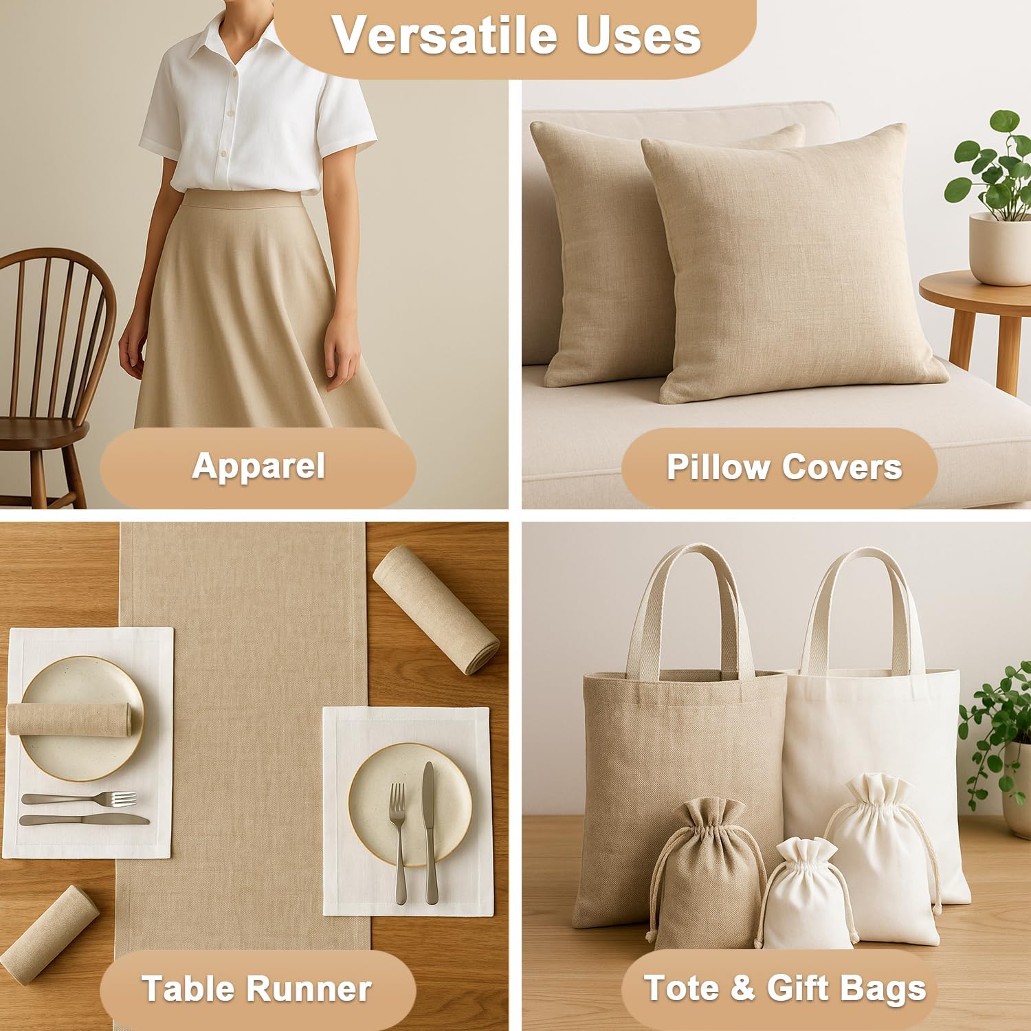 Two Versatile Colors: Choose White or Natural (flax/light khaki tone) with subtle luster that upgrades any home décor fabric project—pillow cover fabric, tablecloth/runner fabric, and curtain fabric.