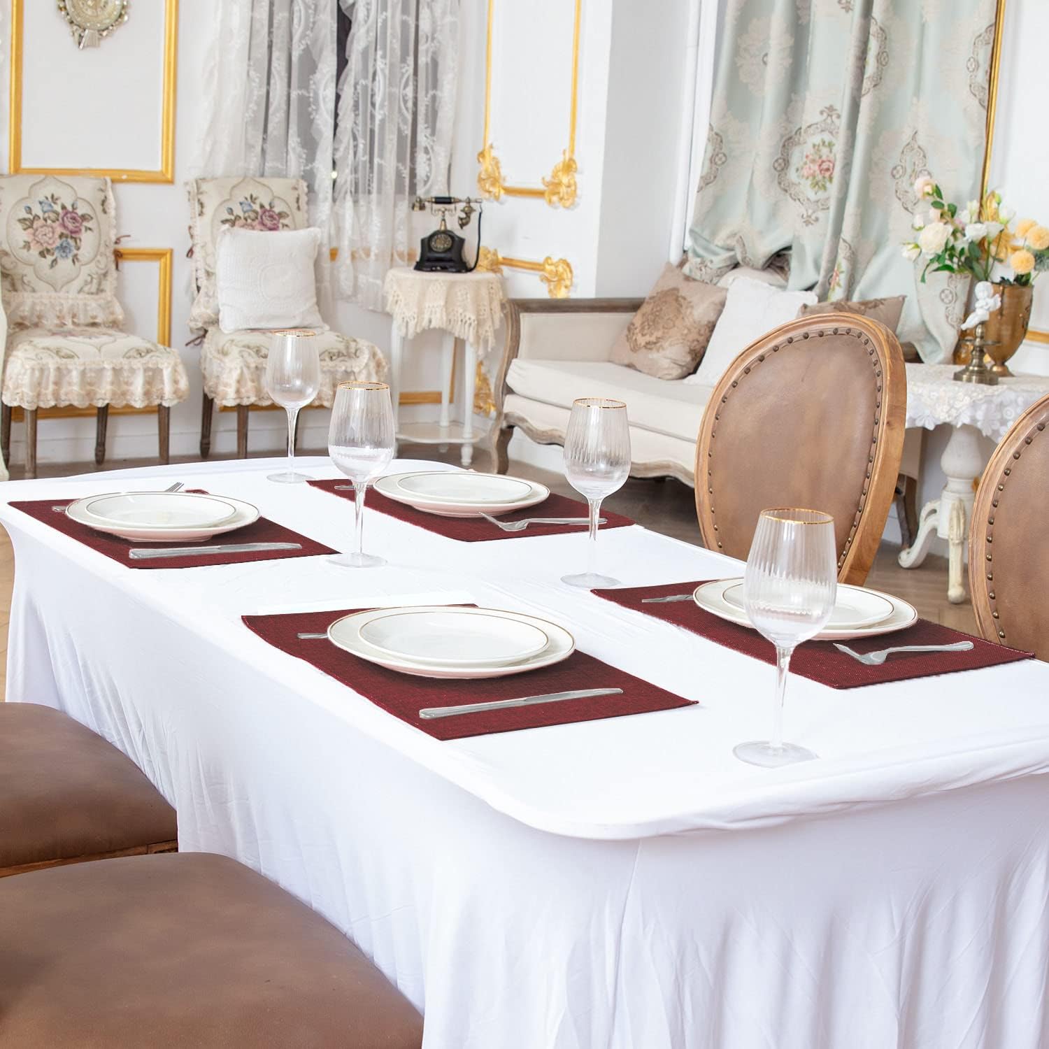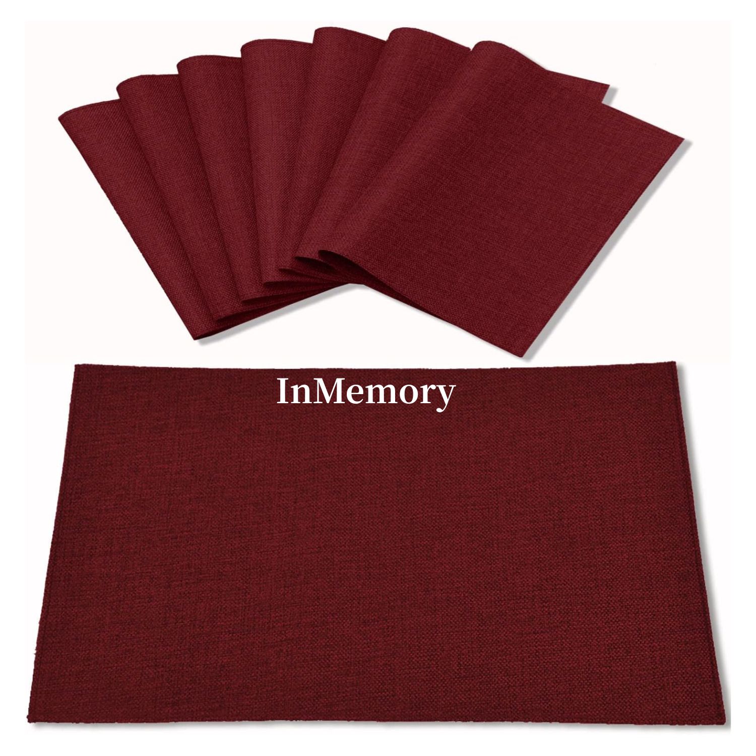 Brand: InMemory      Color: Burgundy      Material: Polyester      Size: Placemats 12'' x 18'', Set of 8