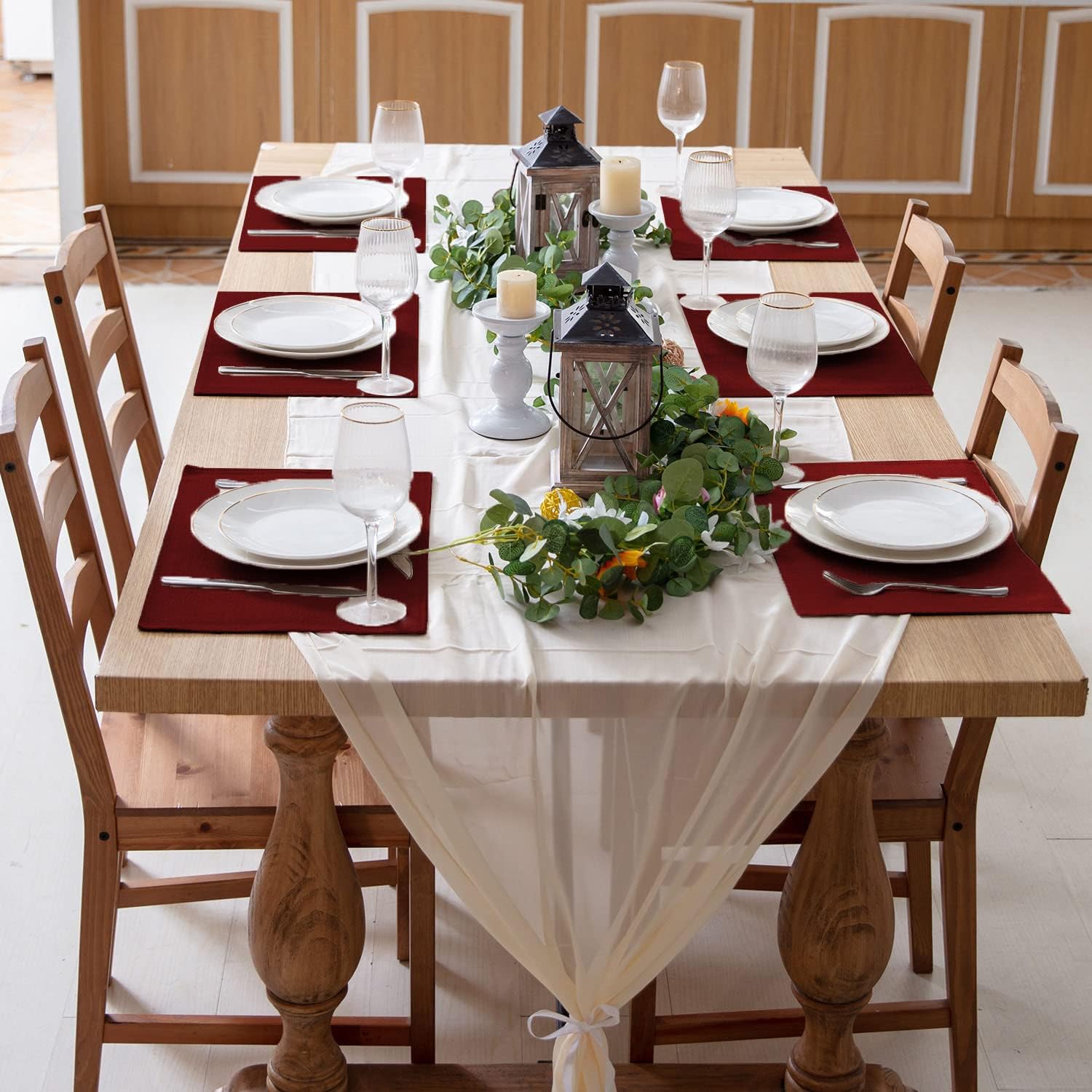 RUSTIC LOOKING, PERFECT FOR CHRISTMAS & NEW YEAR & HALLOWEEN & THANKSGIVING DECOR: Made by textured polyester fabric and designed like linen, our table mat has a rustic and cozy look. It effortlessly enhances your table settings and adds a warm, natural touch to your Christmas, New Year, Halloween and Thanksgiving dinner party, making it perfect for the season.
