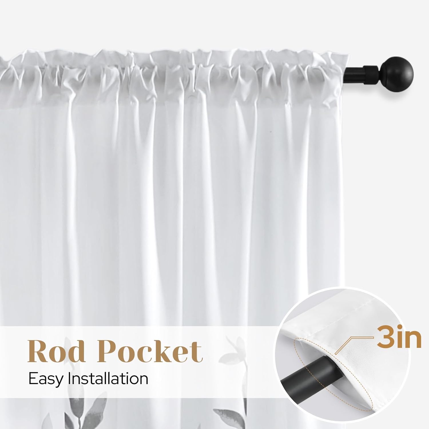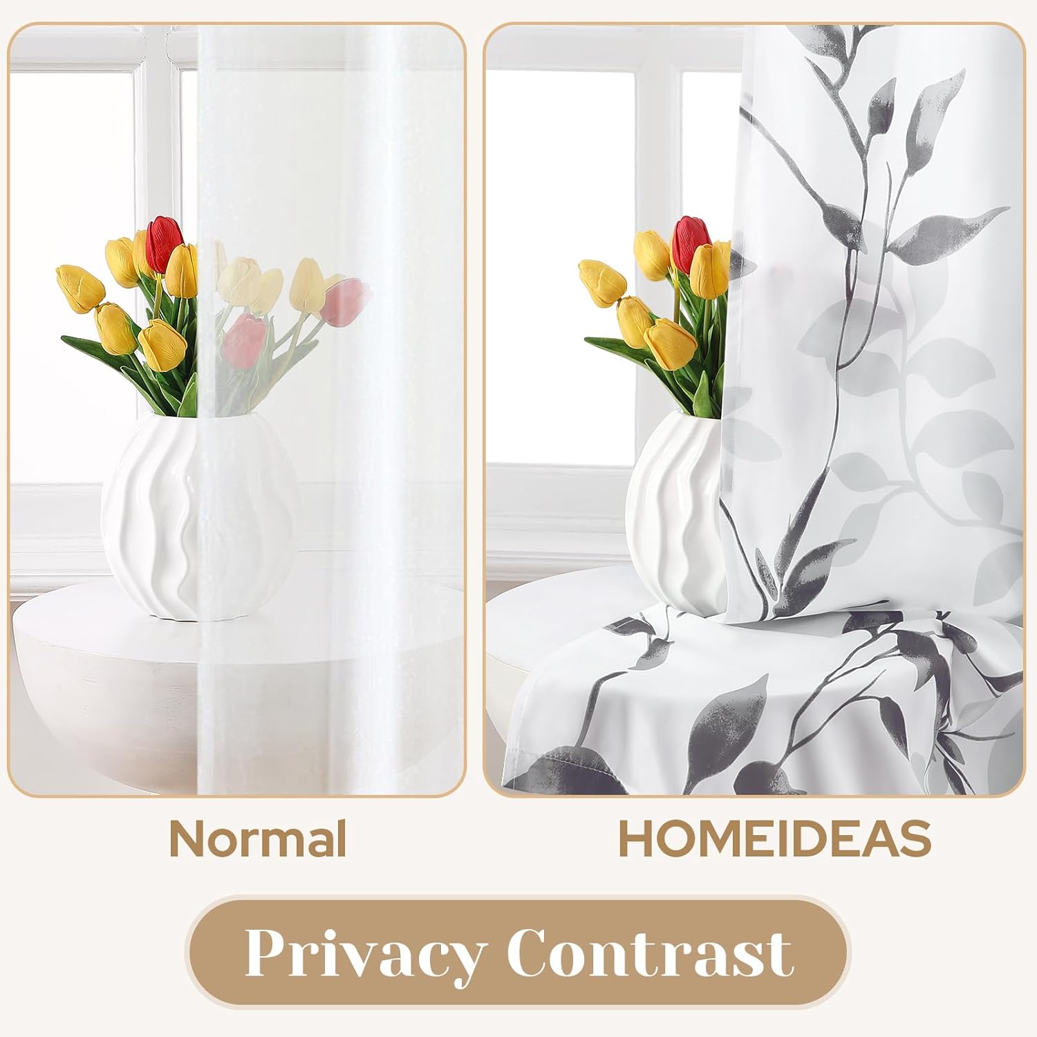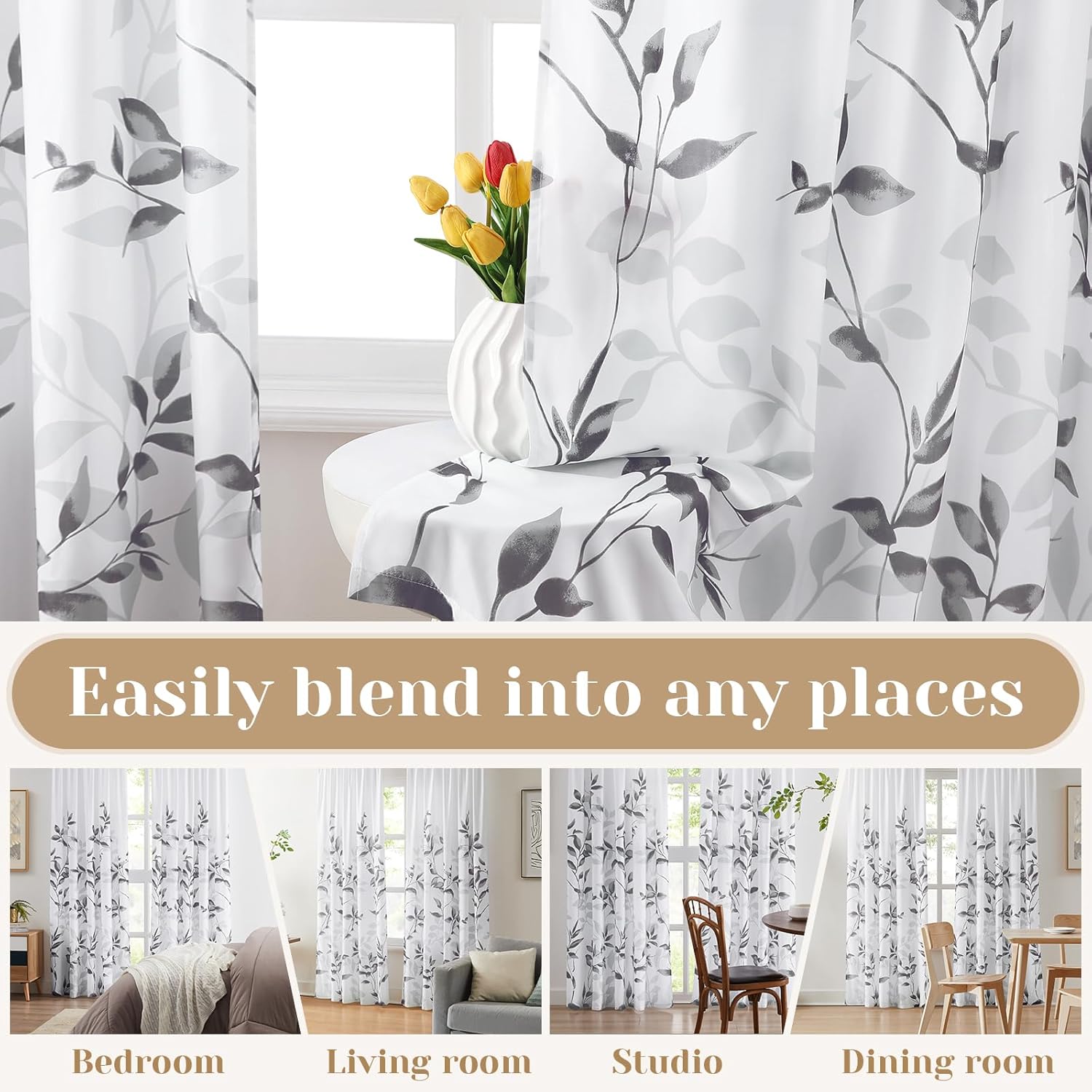 Brand: InMemory Size: 52"W x 63"L (Pack of 2) Customized sizes avaiable Color: Leaves-light Grey Material: Polyester Package Includes: 2 Panels of Non-See-Through grey and white leaf floral printed semi-sheer curtains. Each panel measures 52"W x 63"L. Printed Pattern: The leaf print pattern is concentrated at the bottom of the curtain, and the top is blank, just like the leaves growing luxuriantly from bottom to top, implying hope and vision. In addition, leaves of different colors add a sense of layering to your space. Exquisite and unique pattern design, perfectly blending with your natural colors, suitable for all kinds of spaces that pursue elegance and fashion. Privacy Protection: These privacy sheer curtains make what's behind the sheer unable to be seen clearly while maintaining the brightness. They can balance daylight and privacy perfectly during the day. Suitable for use in bedroom, living room, kitchen, dining room, bathroom, shower, french patio doors. Quality Fabric: It is more textured than ordinary sheer curtains, silky smooth to the touch, and not easy to snag, suitable for families with cats. Easy to Install: The rod pocket design of these window sheer curtains makes installation very simple and will not damage the curtain rod. Easy Care: Machine washes cold with similar colors. Do not bleach. Tumble dry low. Cool iron if needed. Do not dry clean.