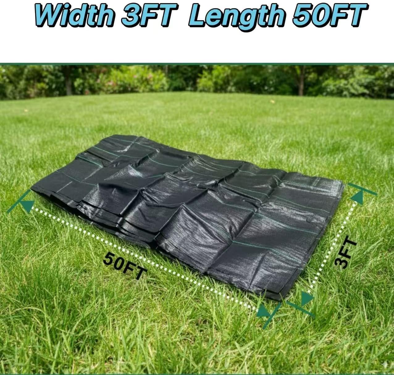 Brand: InMemory Color: Black Size: 3FT x 50FT Material: Polypropylene (PP) Fabric Premium Weed Control and Soil Protection: Our heavy duty weed barrier landscape fabric is crafted from premium woven polypropylene geotextile, designed for weed control, weed block, and ground cover. Effectively prevents weed growth while maintaining a clean and tidy garden, lawn, vegetable patch, or flower bed. Durable and Heavy Duty Material: Made of tear-resistant, weather proof polypropylene (PP) fabric, this durable and long-lasting weed blocker can withstand harsh weather, heavy foot traffic, and even vehicle use, providing reliable erosion control and driveway stabilization for years. Breathable, Permeable and Soil-Friendly: Unlike plastic mulch, our permeable and breathable landscape fabric allows air, water, and nutrients to flow through, keeping soil healthy and plants well-nourished. Helps retain soil moisture, reduce water evaporation, stabilize soil temperature, and protect your yard’s ecosystem. Easy to Install and Customizable Sizes: Our garden weed cloth is lightweight, flexible, and easy to cut and DIY with scissors or a utility knife. Featuring green guidelines for precise alignment, it can be used in narrow beds, wide ground cover, or large driveways. Installation requires no special skills – simply cut, lay, and secure with landscape staples. Multi-Purpose Applications and Wide Use: This versatile landscape fabric is ideal for gardening, agriculture, landscaping, and construction projects. Perfect for gardens, greenhouses, gravel paths, patios, sidewalks, raised beds, retaining walls, and commercial driveways. Provides excellent ground cover, underlayment, erosion control, and soil stabilization.