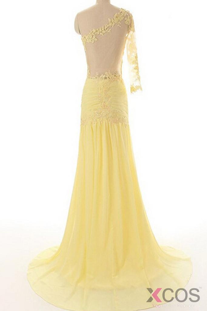 • Lace Chiffon Daffodil Long Prom Dresses Evening Dresses ED0649