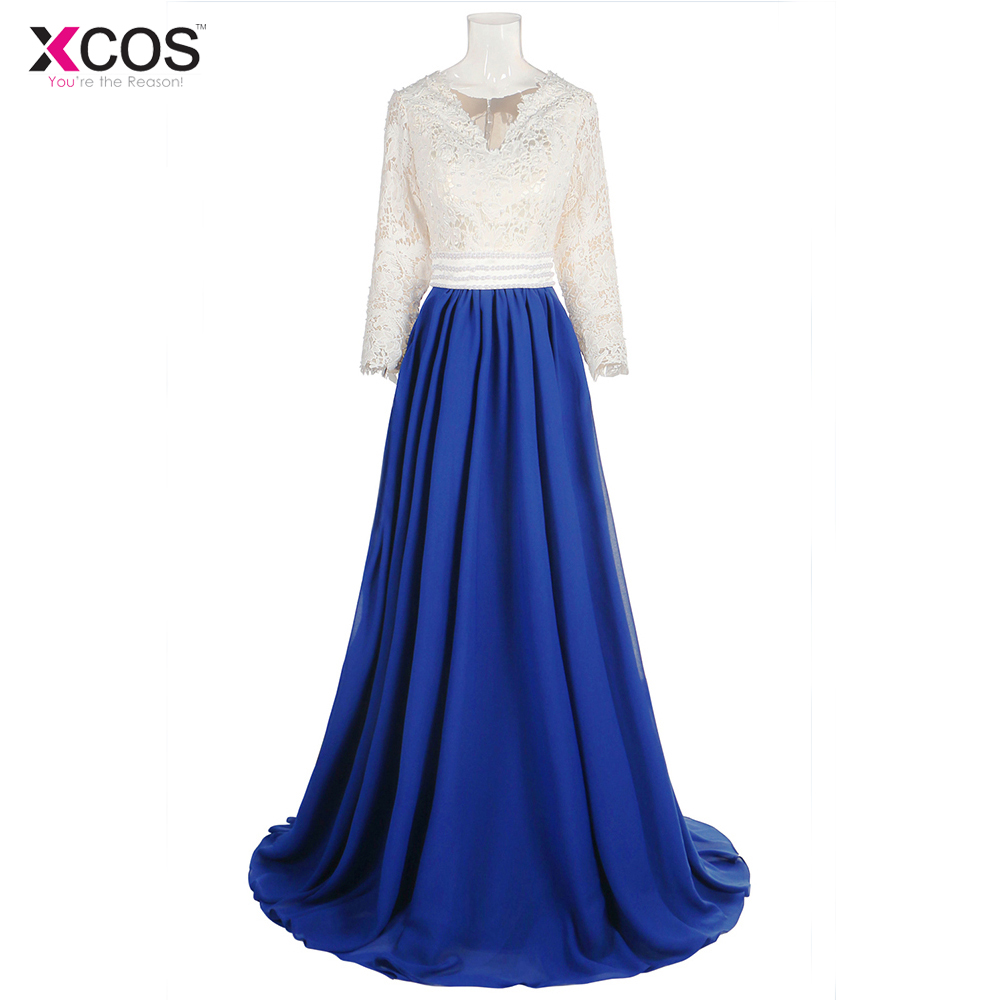 Lace Formal Gowns Custom Size Vestido de Festa Blue Evening Dresses Long Sleeve Plus Size 2018 Evening Dress