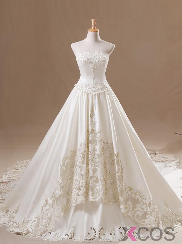 Latest A-line Strapless Floor-length Lace Wedding Dresses LADT50083, be made with the top quality Lace, give you the best feeling. White Wedding Dresses Strapless design and Appliques made the Luxuriousstyle. A-line Wedding Dresses always are the best vintage choice.