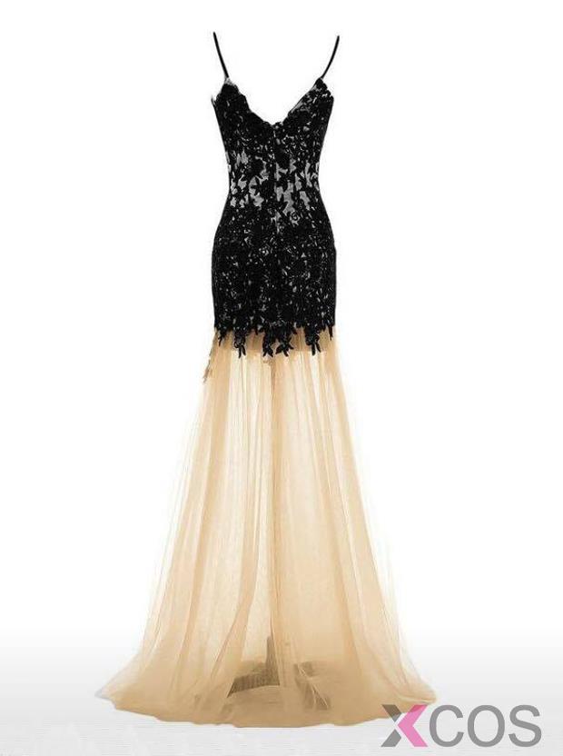 • Mermaid Dress Champagne Spaghtti Straps Floor-Length Prom Dress