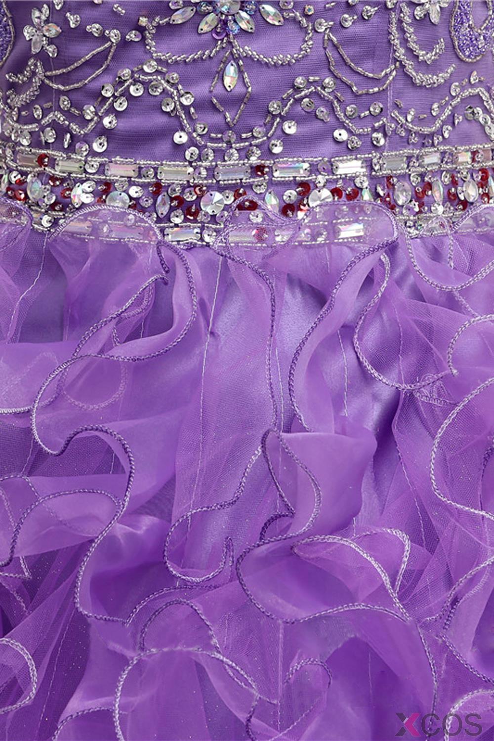 • Modern STraps Beading Ball Gown Purple Quoncenera Dress Lace up