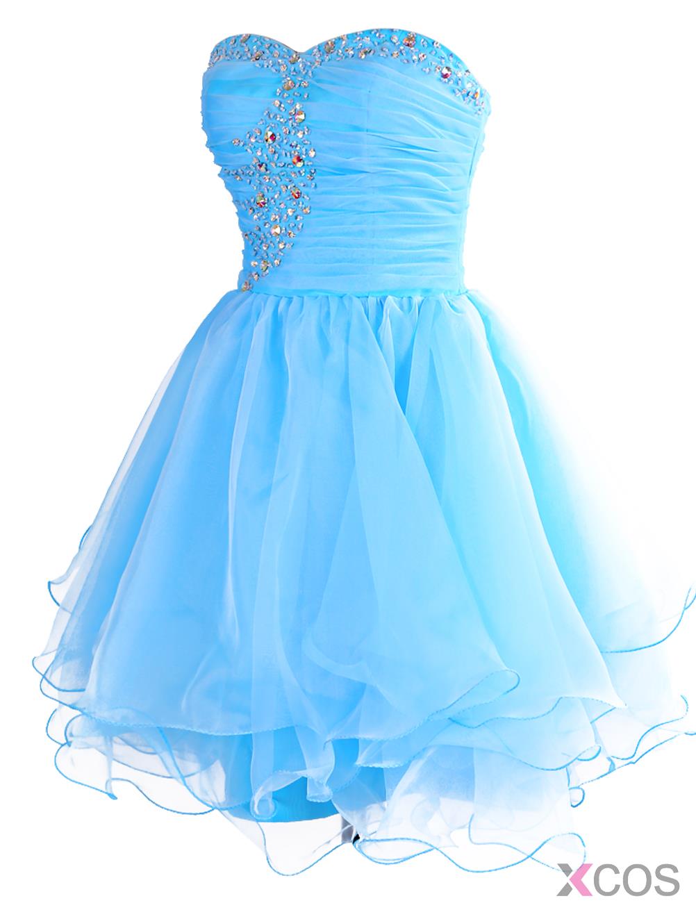 • Modern Sweetheart Beading Short Blue Homecoming Dress Prom Gown