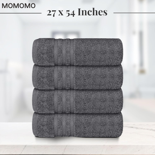 Brand: MOMOMO Color: Dark Grey / Sky Blue / Light Green Material: Cotton Size: 27 x 54 Inches 100% COTTON: This bath towel set is made from 100% cotton without any artificial materials, making it safe for you and your family. LIGHT WEIGHT, QUICK DRY, EASY CARE: This set of bath towels for bathroom are light weight and are quick to dry, hence easy to care for. They are perfect for everyday use. BATH TOWELS SET FOR BATHROOM: This bathroom towel set includes 4 bath towels with an ideal size, measuring 27 inch x 54 inch. MADE IN GREEN AND OEKOTEX CERTIFIED: This towel set is made in an eco friendly and socially responsible production facility. MACHINE WASHABLE: This set of bath towels is machine washable in cold water and takes lesser time to dry. Avoid usage of fabric softeners and bleach, do not iron, wash the towels separately. Wash your towels before first use for best results.
