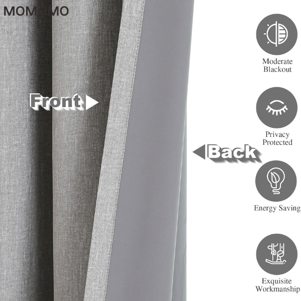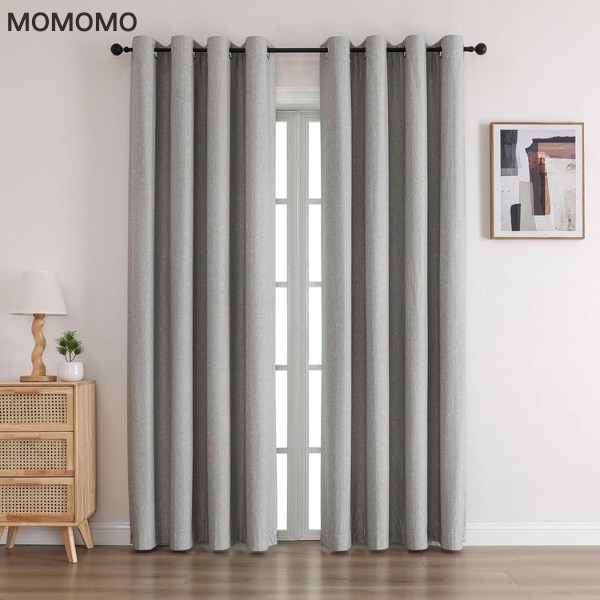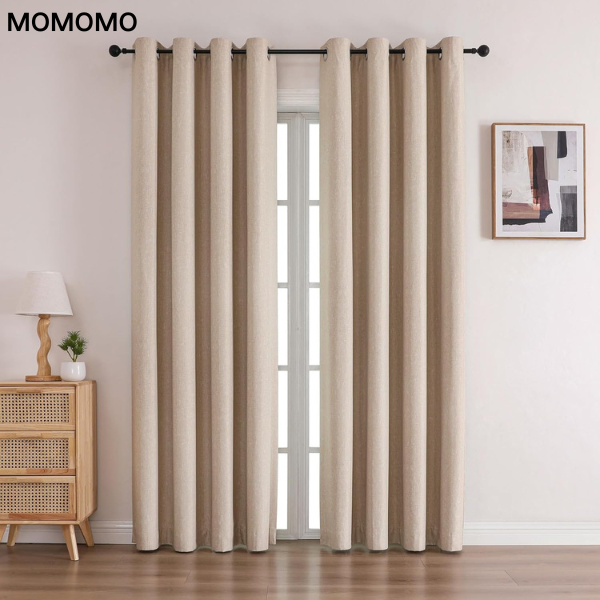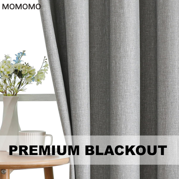 MOMOMO Blackout and Heat-insulating Window Curtains for the Living Room with a Linen-like Texture