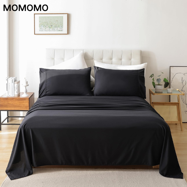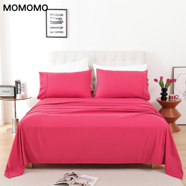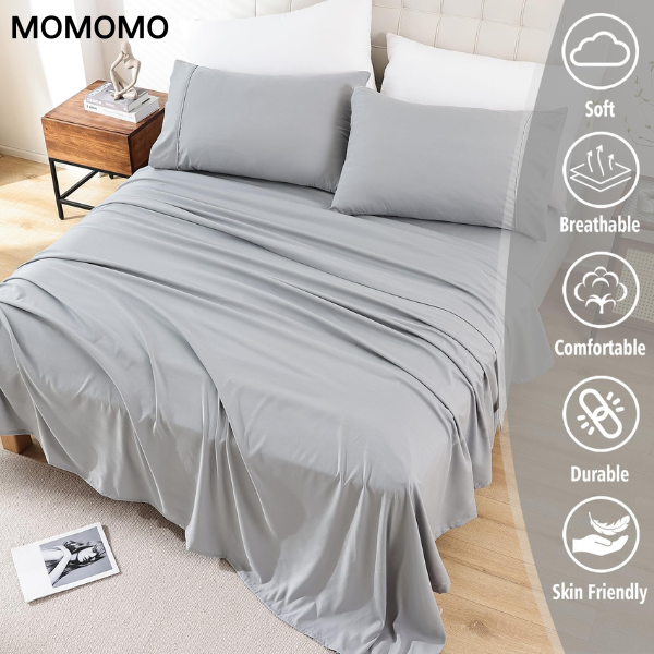 MOMOMO Bed Sheet Set - Luxury Soft Comfy Bed Sheets, Breathable Cooling Hotel Bedding for Women, Men, Teens, Extra Deep Pocket, Easy-Fit, Oeko-Tex, Wrinkle Free 3 Piece Brand: MOMOMO Material: Microfiber Pattern: Solid Color: Gray / Black / Aqua / Magenta Size: Twin / Full / Queen / King LUXURY HOTEL SHEETS - Bringing you a luxurious sleep every night. Silky soft sheets made of the highest quality microfiber and double brushed on both sides for extra softness and breathable. Enjoy the pleasure of waking up naturally from sleep with this skin friendly oeko-tex sheets. (After OEKO-TEX Standard 100 testing, it always takes care of your health.) EXTRA DEEP POCKET FITTED SHEET - All-around stretchable elastic deep pocket fitted sheets are designed to fit all mattresses depths 6 to 16 inches deep. Stronger fit than silk sheets. No matter how you twist and turn while sleeping, the sturdy sheets will not slip off. ULTRA DURABLE & EASY CARE - This soft sheet is resistant to Wrinkles, fade, stain and shrink.It's easy to care for and can be machine washed with mild detergent. Do not bleach. Dry on low heat and iron on low heat if desired. Please wash the dark and light colored products separately.