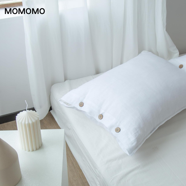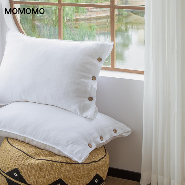 Brand: MOMOMO Color: White Material: Linen Product Care Instructions: Machine Wash Number of Pieces: 2 Size: Standard ( 20"*26" ) / Queen ( 20"*30" ) / King ( 20"*36" ) / Euro ( 26"*26" ) 100% LINEN - Pillowcases made of premium quality 100% natural linen, which is soft, durable, breathable and hypoallergenic, providing a luxurious and comfortable sleep experience. PREMIUM QUALITY - Our pillowcases are carefully crafted with double-stitched edges for added durability and a neat appearance. The coconut button closure adds a touch of elegance. EASY CARE - Machine washable and dryable, these pillowcases are easy to maintain and keep their shape over time. They are suitable for regular use and can withstand frequent washing. COCONUT BUTTONS: The coconut buttons on the closure add a touch of luxury and sophistication to the pillowcases.