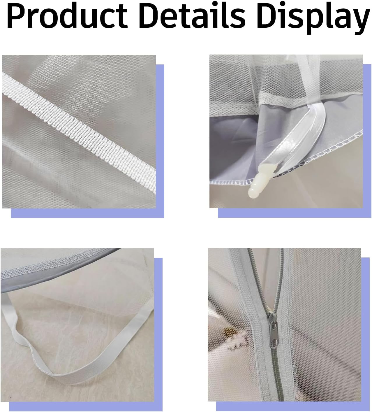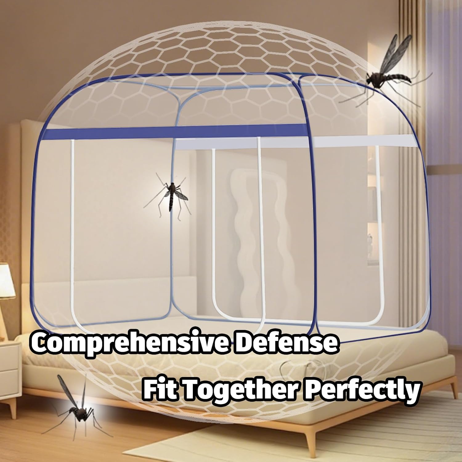 Brand: InMenory Color: Grey / Blue Size: 77-81" W x 85-89" L Material: Polyester Item Weight: 9.6 ounces VERSATILE FOR INDOOR & OUTDOOR USE: Perfect for dormitory beds, business trips, vacations, and backyard relaxation. Its durable construction also makes it a reliable outdoor tent for camping adventures. DURABLE POLYESTER MESH: Crafted from reinforced polyester fabric with fine stitching for enhanced durability. The tightly woven mesh creates a reliable barrier against mosquitoes and other insects while maintaining excellent airflow. SPACIOUS FLAT TOP & STABLE BASE: The expanded flat top design offers more headroom than traditional mosquito nets. The full-bottom netting allows your mattress to sit on top, securing the net firmly in place. CONVENIENT U-SHAPED DUAL-ZIPPER DOORS: Features easy-access doors on both sides with dual zippers. This practical design allows for entry and exit from inside or outside, adding to your convenience. EFFORTLESS POP-UP & COMPACT STORAGE: Sets up quickly and easily without any tools or hooks. The size is approximately 87* 79 * 64 inches, Folds down neatly for compact storage and travel. Fits most adult beds (77-81" W x 85-89" L)