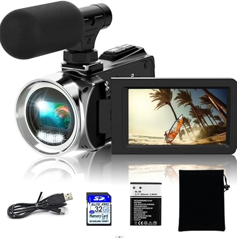 HD 4K & 48MP Video Camera: 4k video camera camcorders supports shooting FHD 4K video (3840*2160P ) and 48MP crystal-clear images, It equipped with 3.0 Inch / 270° flip screen,18X digital zoom, 1050mAh battery and 32G SD card. Great for travelling, meeting, studying and kids/ beginners/ students/ olders record their lovely moments.