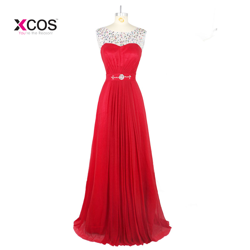 Red Wine Prom Dresses Long 2018 Scoop Neck Cap Sleeve Crystal Beaded Chiffon Floor Length Evening Dress Abendkleider