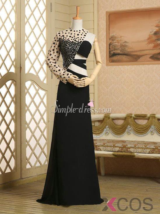 Sexy Beading One Sleeve Long Chiffon A-line Prom Dress CHPD-30987