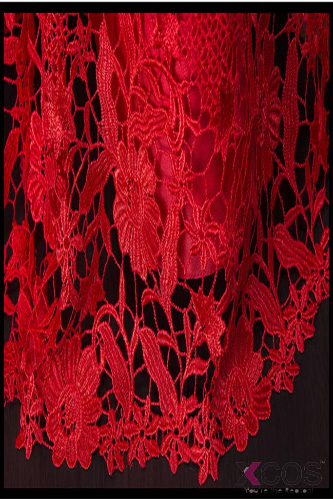 Sheath Real Sexy Red Lace Long Mermaid Backless Prom Evening Dresses ED0713