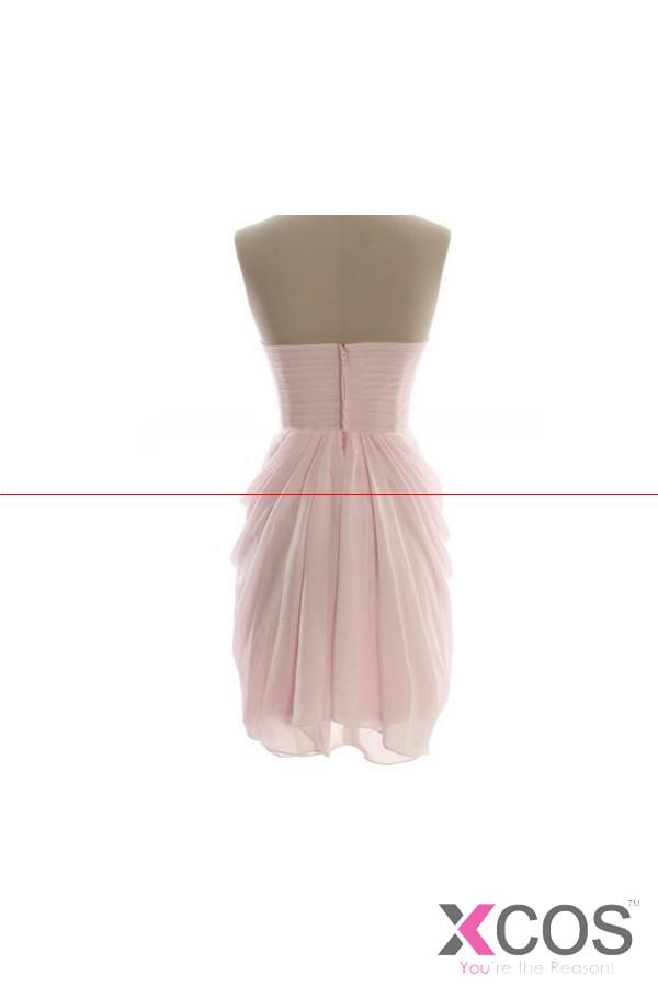• Short Simple Cheap Chiffon Pink Sweetheart Bridesmaid Dresses OK18
