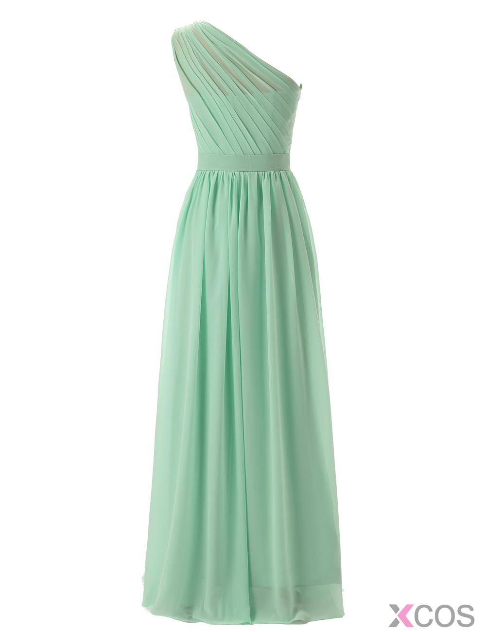 • Simple A-line Chiffon Ruffles-Mint Long Bridesmaid Dress